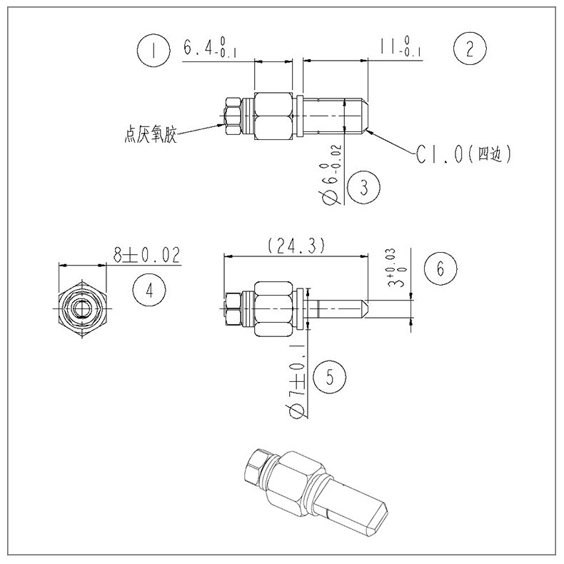 使用方法:折疊臺燈轉軸的軸套為六邊形,軸件銑扁,裝配時從臺燈活動關節一側壓入即可使用,軸件固定,軸套轉動。